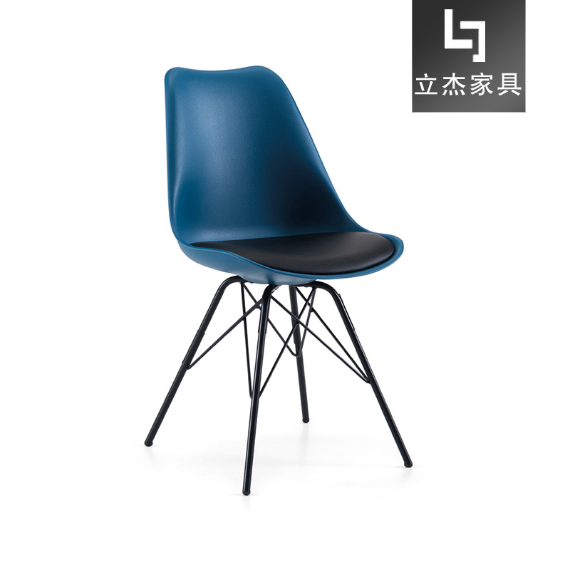 PP原生料,PU海棉座墊,黑色烤漆鋼架,藍(lán)黑座背