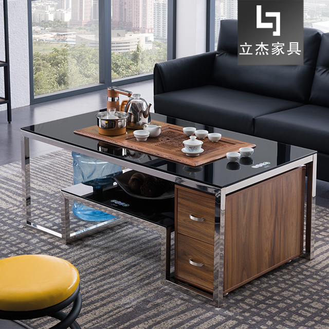 10MM鋼化玻璃,黑色烤漆,優質不銹鋼架,進口雞翅木茶盤+智能抽水電子茶爐+8MM鋼化玻璃+儲物柜(可選)