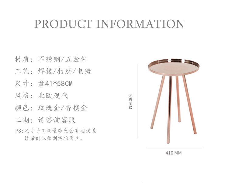 名稱:北歐金屬床頭柜簡約輕奢家具迷你床邊柜小邊幾桌子玫瑰金色 [CTT-05]