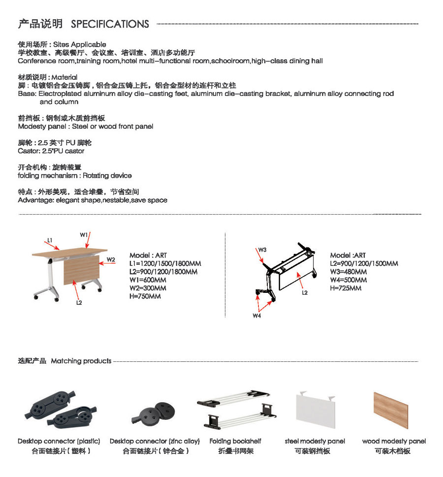 名稱:條桌折疊培訓(xùn)桌會議桌翻板桌移動桌子帶輪 [TD-Art]