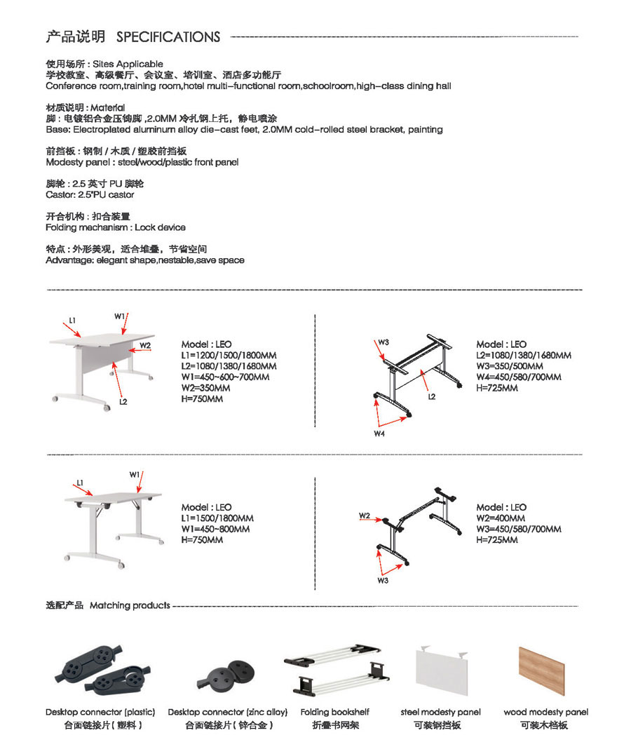 產品規格(Specification): 面折疊1200~1800W*450~800D*750H 腳折疊1500~1800W*450~700D*750H