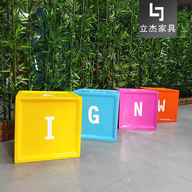 品名:商場玻璃鋼休閑椅子幼兒園卡通座椅兒童區裝飾游樂園創意字母坐凳